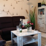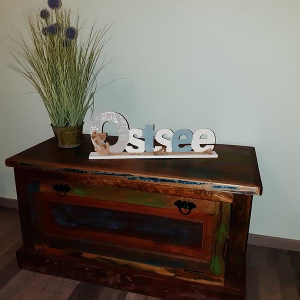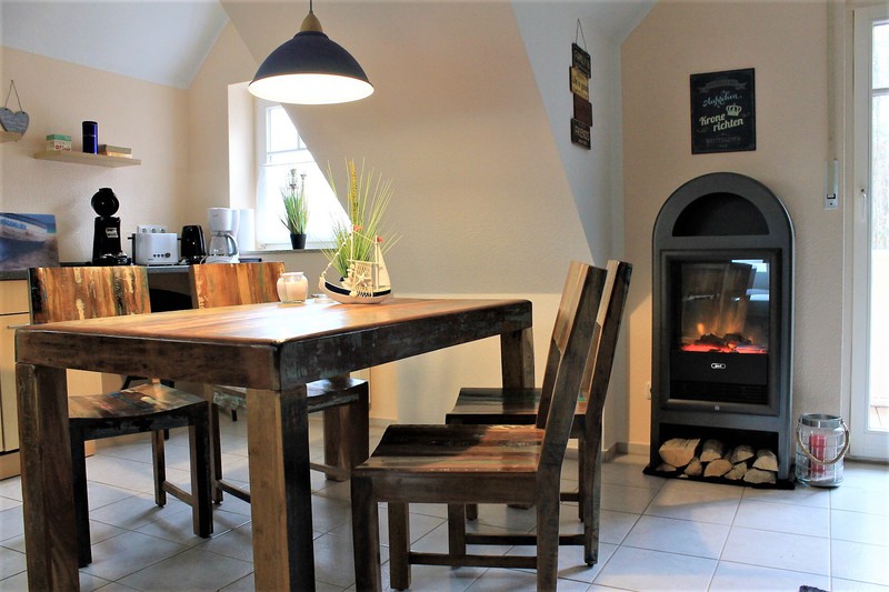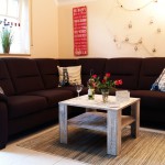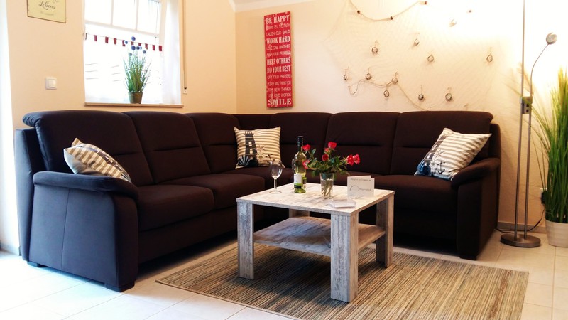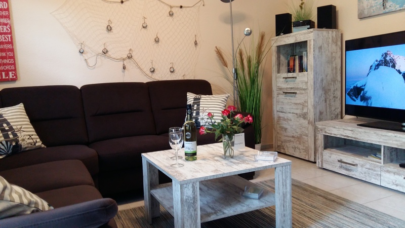 Im Wohnbereich befindet sich eine sehr gemütliche Eckcouch, die zwei Personen genügend Platz bietet und zum ausgiebigen Relaxen einlädt. Die hölzernen, maritimen Möbel bieten Stauraum für jede Menge Bücher, Kerzen, Weingläser und natürlich unseren 55" LG Flachbild-LED-TV mit fast 140 cm Bildschirmdiagonale. Hier genießen Sie Kinofeeling und / oder romantische Stunden ;-)