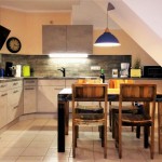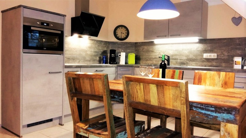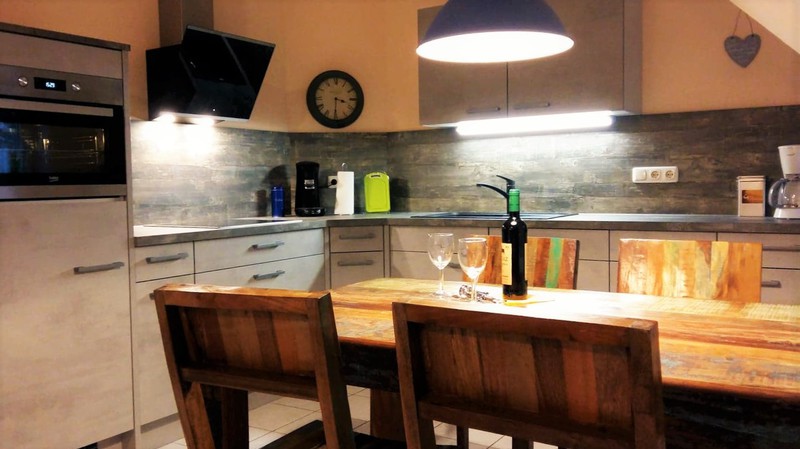In der komplett ausgestattete Küche finden sie einen Geschirrspüler, einen Kühlschrank, zwei Kaffeemaschinen (für gemahlene Kaffebohnen oder Kaffee-Pads), eine Mikrowelle, einen Wasserkocher, einen Backofen, einen 4- Plattenherd und vieles mehr.